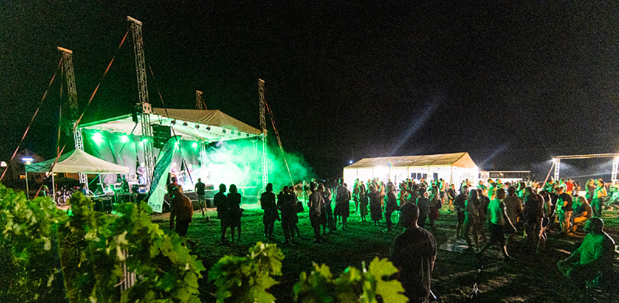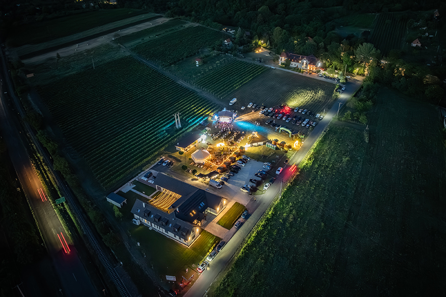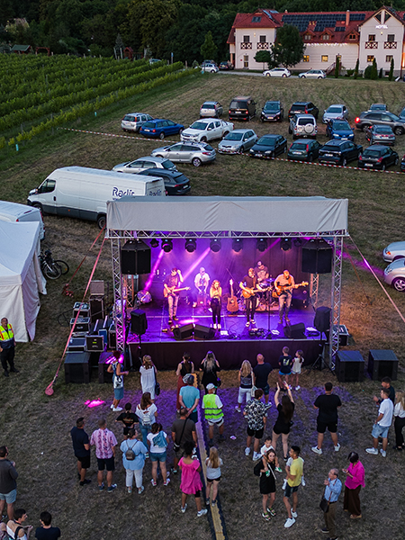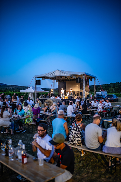 A minőségi zene, a csodálatos környezet, a színes fények a szőlőtőkék lábánál már csak hab a tortán.